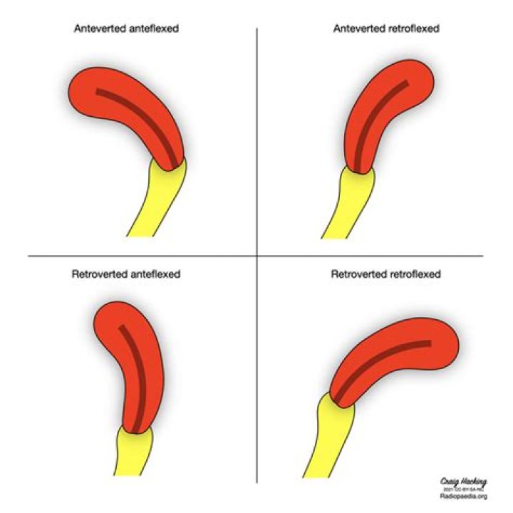 The normal position is an anteverted uterus, where the uterus tips forward, whereas a retroverted uterus is angled slightly posterior. The uterine position is also sometimes described relative to the location of the fundus; that is, an anteflexed uterus, which is normal and where the fundus tilts forward.