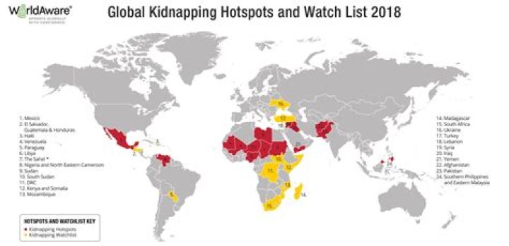 Americans are kidnapped in many different countries, from Syria, Yemen, Afghanistan and Pakistan, to Mexico, Brazil, Iran and North Korea. The geography of kidnapping changes over time.