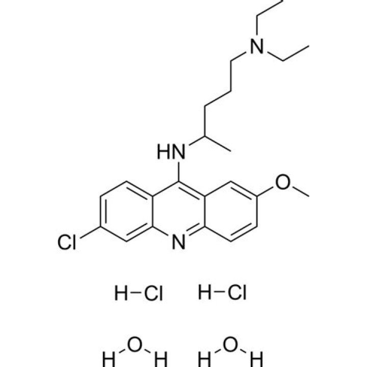 Isabella Wilson Description. An acridine derivative formerly widely used as an antimalarial but superseded by chloroquine in recent years. It has also been used as an anthelmintic and in the treatment of giardiasis and malignant effusions. It is used in cell biological experiments as an inhibitor of phospholipase A2.