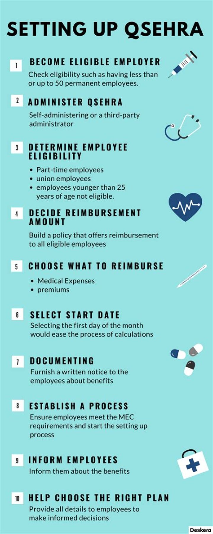 Seven steps to setup your QSEHRA:- Pick a start date.